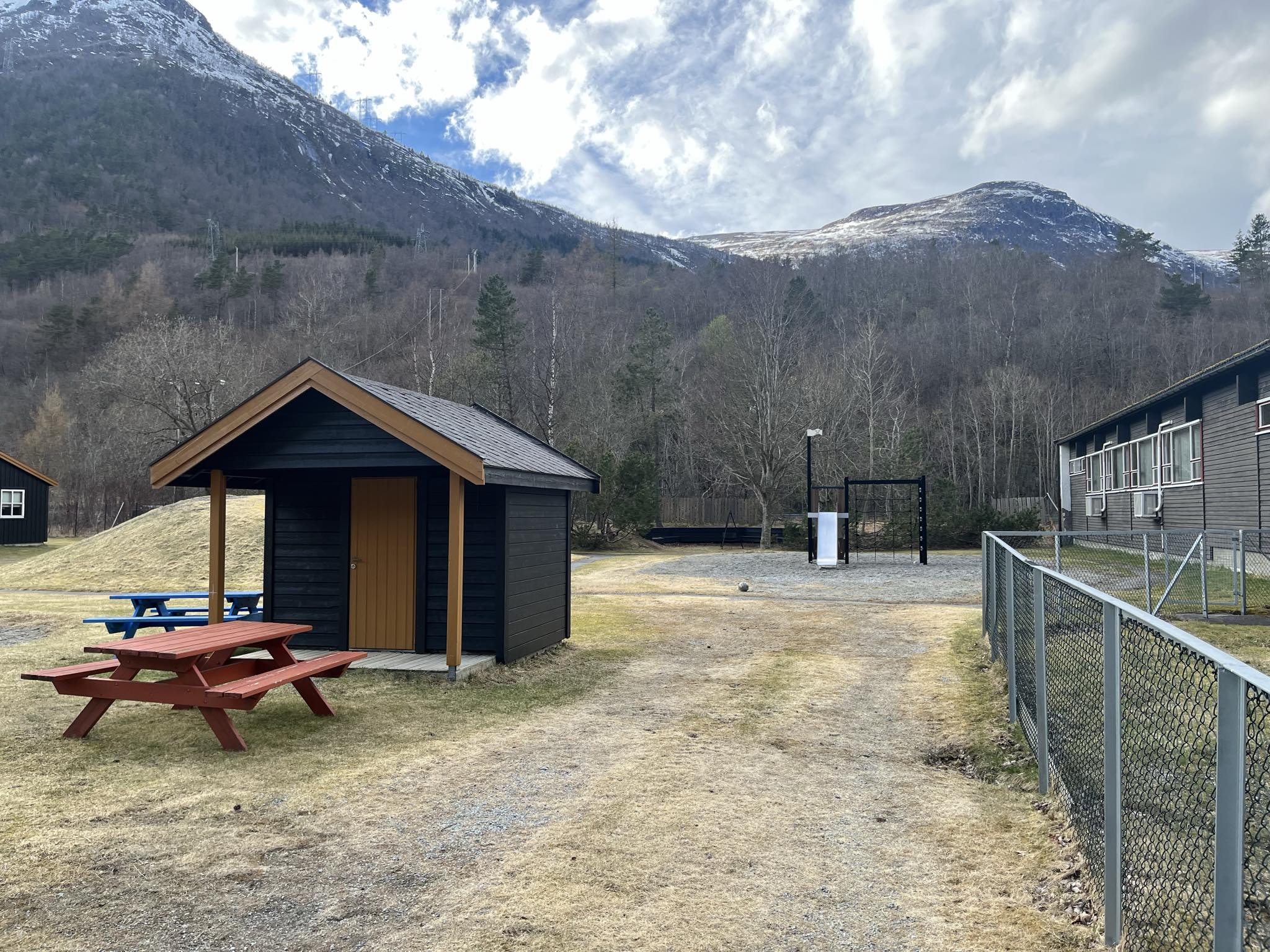 Usjenert og idyllisk beliggende med flott uteområde og fotballbane, egne dusjer. Plass til ca 60 pers.